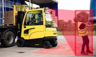 Hyster erweitert sein Angebot an Warnsystemen und Assistenzsystemen um ein ausgefeiltes Kamerasystem zur Fussgängererkennung. Sie ergänzt das Fahrerassistenz-System «Hyster Reaction». Die Kamera erfasst Fussgänger in einer Entfernung von bis zu fünf Metern präzise durch ein 110-Grad-Sichtfeld.